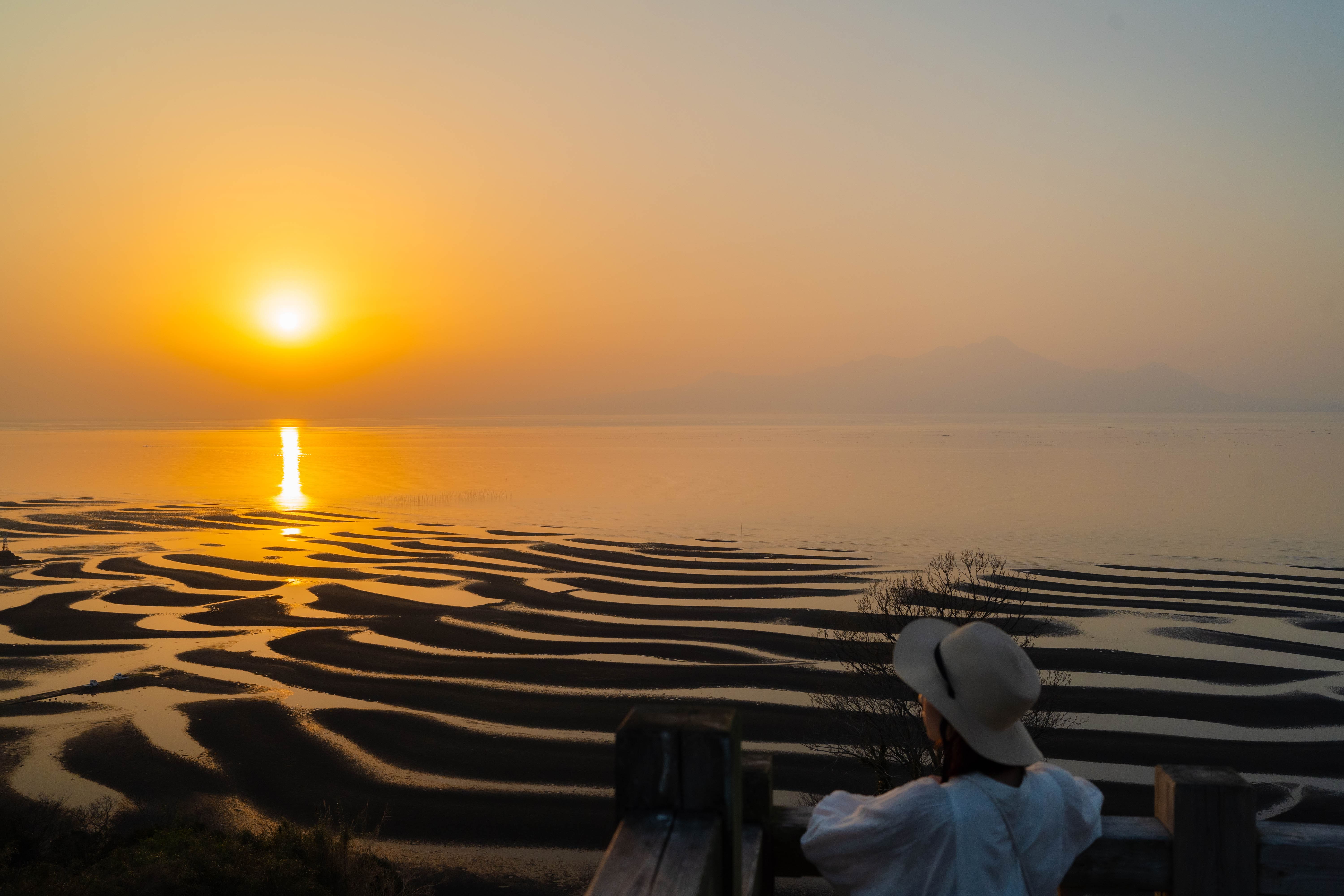 - 幾重に連なる三日月型の砂のアートは圧巻。2〜5月、干潮時にのみ見られる特別な風景です。